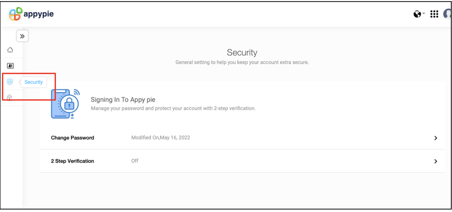 From the left navigation menu select “ security”.