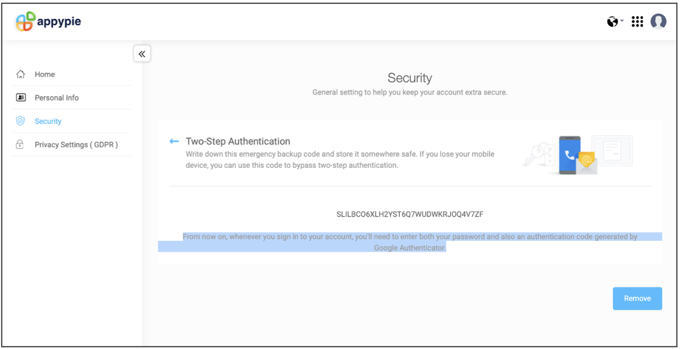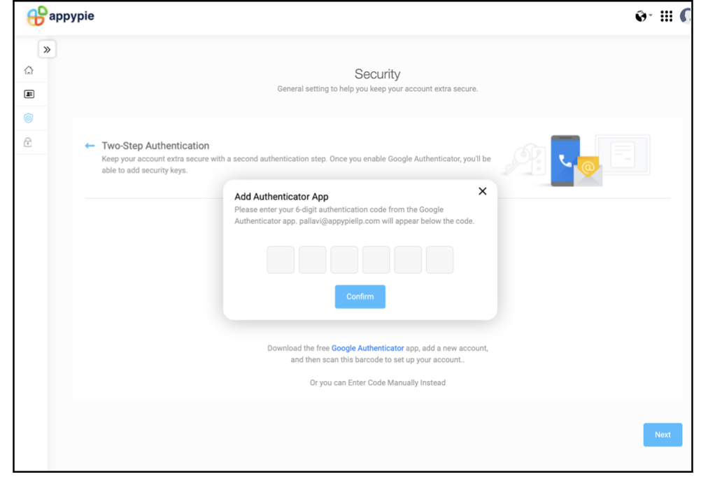 Get the 6 digit code for your Appy pie account.